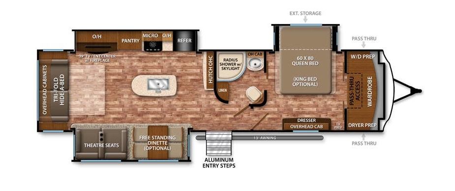 - Outdoor Living – Power awning with LED lighting and exterior speakers