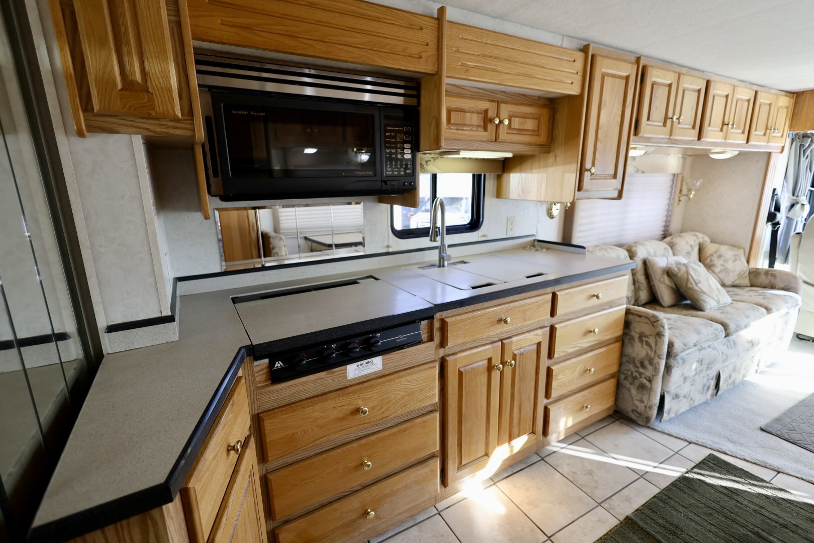 🍳 Fully equipped kitchen with 3-burner range, convection microwave, 4-door refrigerator, and plenty of storage