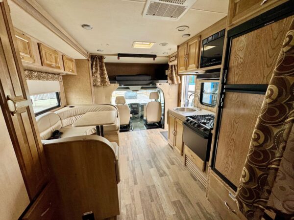 This model offers a luxury interior, full kitchen and bath, multiple sleeping options, and smart storage solutions—all packed into a manageable 25-foot coach.