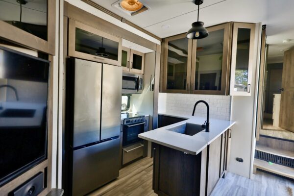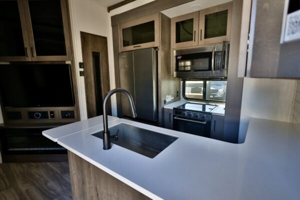 The 2023 Alliance Valor 37V13 is the perfect blend of rugged adventure capability and luxury residential comfort. Designed with thrill-seekers in mind, this toy hauler fifth wheel gives you the power to bring along your ATVs, UTVs, or motorcycles while still offering a spacious, beautifully appointed living space.