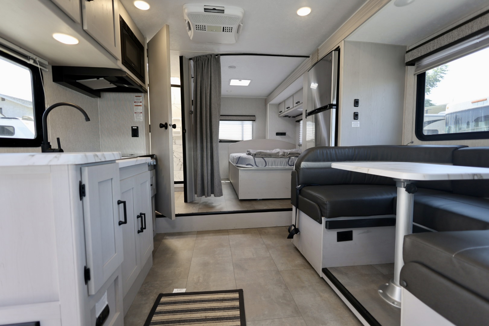 Sleeps up to 6 – private queen bed, cab-over bunk, and convertible dinette