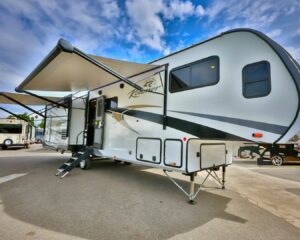 $32,990.0039’2” fifth wheel with 4 slide-outs and sleeping capacity up to 9. Approx. 11,210 lbs dry weight with 13,500 lb GVWR.